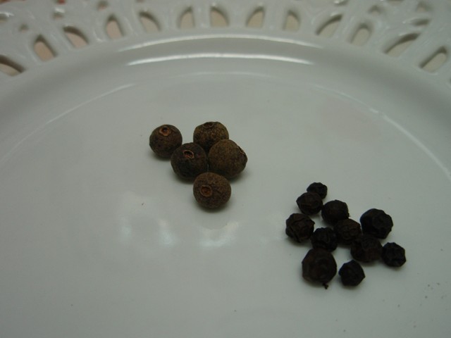 Después de haber escrito este post añadí unas fotos. En Lidl encontré una mezcla de especias que llevaba más cantidad de pimienta de Jamaica. Os muestro la diferencia entre esta pimienta y la pimienta negra. Así la reconoceréis más fácilmente.