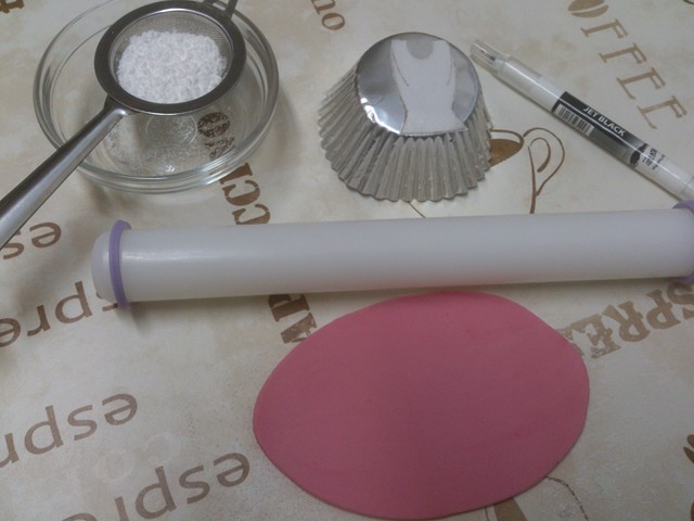 – Fondant rosa y blanco.