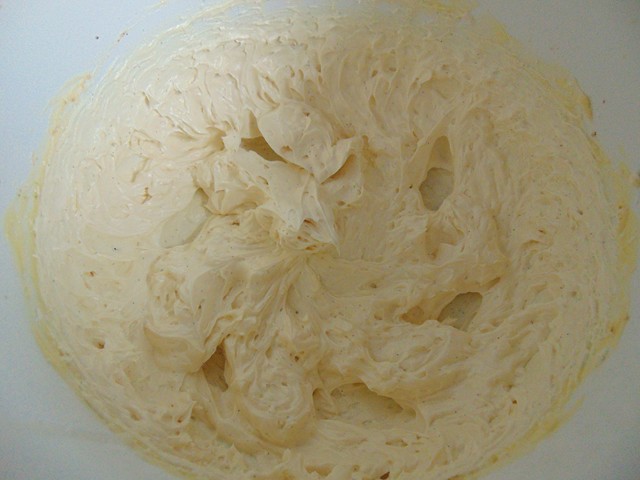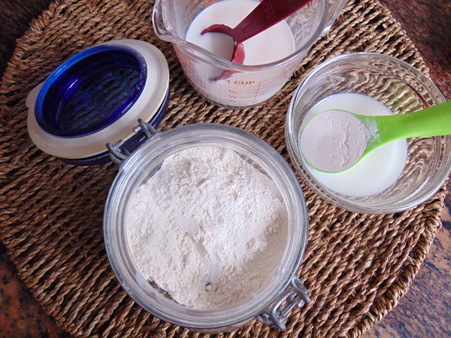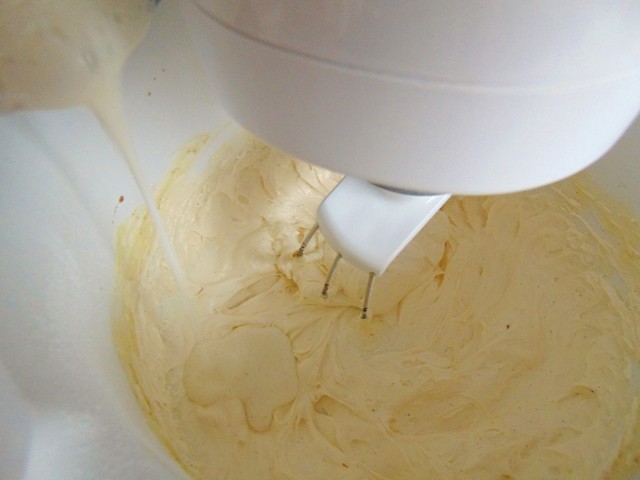 - Prepara el molde-Usando un pincel especial para pastelería, recubre el interior del molde por toda su superficie con una grasa, tipo mantequilla. Luego espolvorea harina (recomienda la marca Wondra®) distribuyéndola por el interior del molde y quita el exceso dándole la vuelta y golpeando un poco el molde desde fuera. También podéis utilizar spray desmoldante antiadherente que contenga harina (recomienda Baker’s Joy). Luego gira el molde sobre papel de cocina para que libere el exceso de aceite. Evitar utilizar sprays que contengan lecitina pues causa un residuo gomoso que se acumula en la superficie antiadherente del molde.