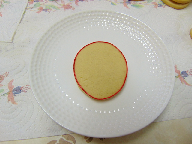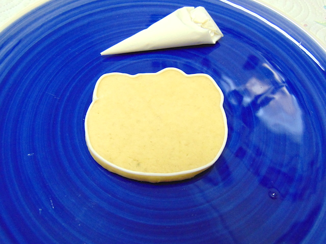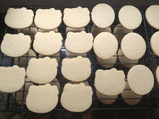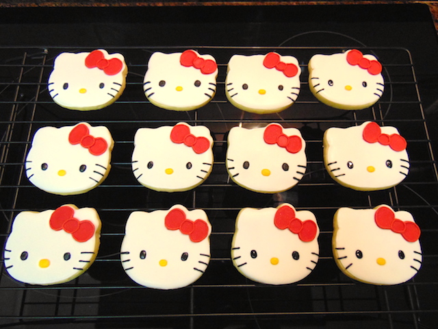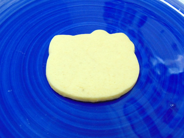 Cuando haces una galleta de Hello Kitty puede parecer que es muy simple, y lo es, pero es importante colocar los ojos y la nariz en el sitio adecuado, sino, pasa a ser una Hello Kitty un poco extraña. Con la ayuda de una plantilla que venía con el molde de Kitty marqué los pequeños detalles con rotulador de tinta comestible.