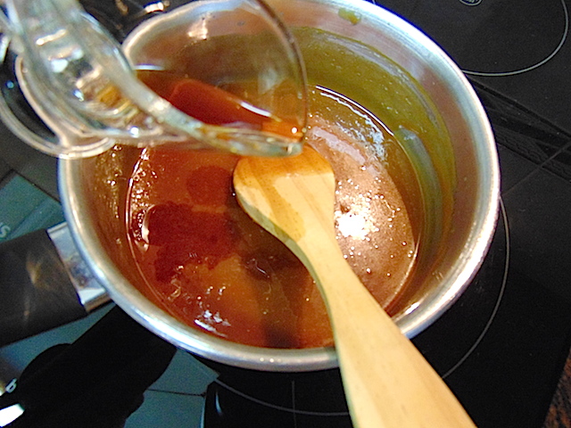 Calienta en un cazo la nata y cuando empiece a hervir retira de la fuente de calor, añade el chocolate troceado y remueve con varillas o cuchara de madera hasta que se disuelva por completo, añade azúcar o extracto al gusto y deja que se enfríe un poco antes de utilizar para que adquiera consistencia y no esté tan líquido. Remover bien antes de verterlo en la tarta ha de estar resbaladizo para que quede uniforme. Ahora vamos a montar nuestra tarta.