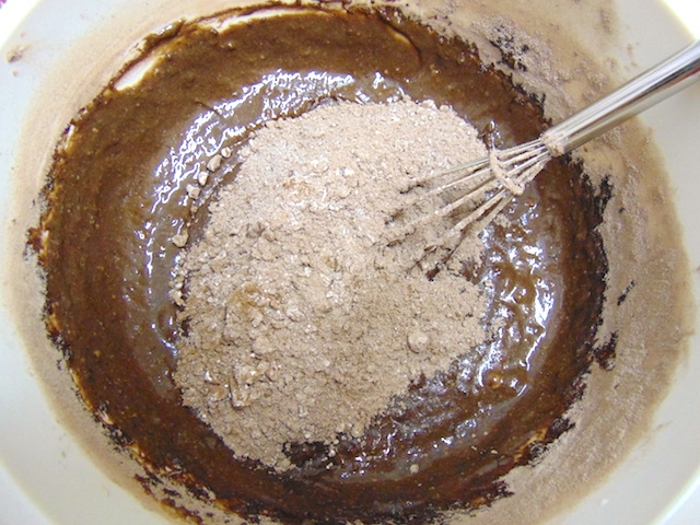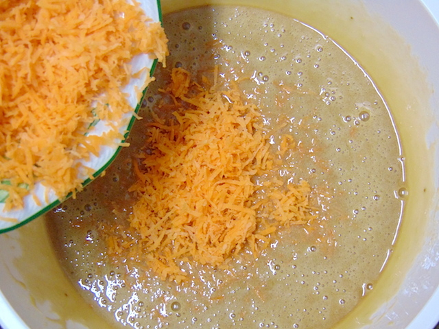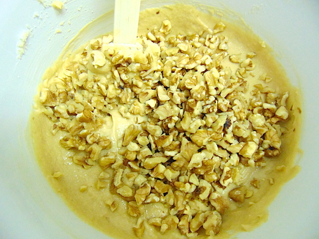 Agregar en dos tiempos la zanahoria rallada y las nueces peladas y troceadas.