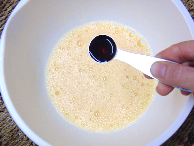 En un bol grande batir los huevos hasta que espumen y añadir la vainilla.