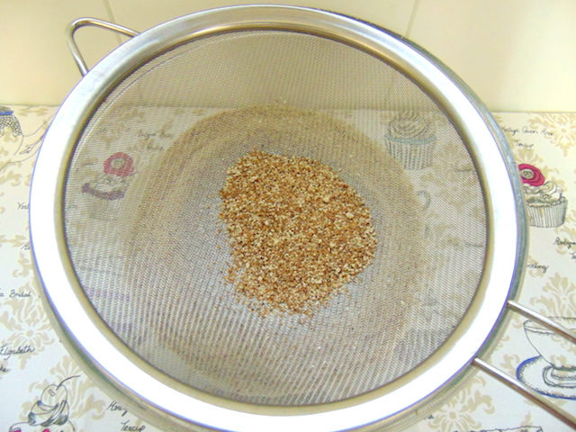 Tostar en el horno a media altura a 180ºC las nueces durante 5 minutos. Después aún calientes colocarlas en un trapo limpio y frotar entre sí hasta que pierdan gran parte de su piel, luego pasar por un tamiz o colador para eliminar las pieles más pequeñas, trocear y reservar.