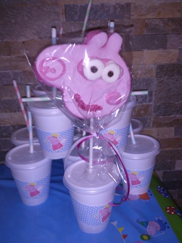 Galletas de mantequilla en piruleta con royal icing.            Piruletas marshmallow de Peppa y George.
