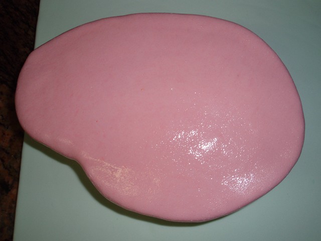 Los ingredientes básicos son muy parecidos a los de la tarta bolso que ya os enseñé, pues el relleno lo hice del mismo sabor. El fondant es de Kelmy, el color rosa fucsia es una pasada!!!