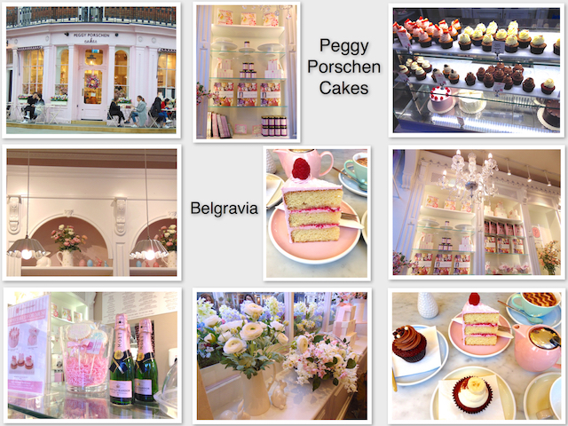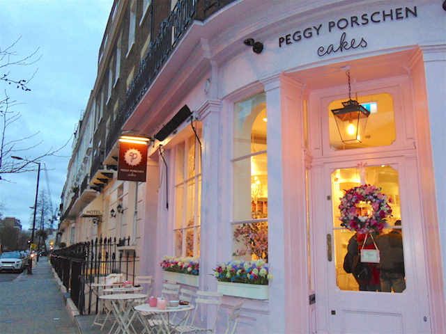 Uno de los caprichos que me permití este viaje y que estaba deseando hacer fue ir a Peggy Porschen Cakes en la zona de Belgravia. Me encanta todo lo que hace esta mujer. ¿Os acordáis de las galletas decoradas Baby shower que hice hace unos años? Pues las hice siguiendo el libro Boutique Baking de Peggy Porschen. Fundada en 2.003 por Peggy Porschen y su marido no sólo es una pastelería al uso, preparan Tartas de boda y otros eventos para la lata sociedad londinense y además acoge en un local de enfrente una Escuela de Decoración de Tartas, Peggy Porschen Academy. La pastelería es un sitio pequeño con muy pocas mesas dentro y algunas más fuera. Tuvimos la suerte de que dejaran libre una mesa nada más entrar nosotros.