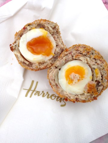 Pero para mí, lo mejor, su Food Hall: quesos, ahumados, ostras, caviar, pescado, marisco, el típico Fish and chips (pescado rebozado con patatas fritas), para tomar, para llevar, … El surtido de comida preparada es increíble: Scottish eggs (huevos rebozados), sauzales rolls (salchicha envuelta en hojaldre), pies salados (empanadas de carne, pescado, queso, …), ahumados, sandwiches, ensaladas, smoothies, fruta fresca, todo lo que puedas desear para preparar un picnic en Hyde Park de lujo. Y no sólo típicas preparaciones inglesas sino de cualquier tipo de comida: sushi, indi, … También hay una sección de productos frescos: fruta, verdura, carne, pescadería, … Los dependientes llevan delantal y unos sombreros de paja muy característicos. Fijaros en los techos, son muy bonitos. No sabréis donde mirar así que mejor ir un par de veces para no dejarse nada. Nosotros lo teníamos muy cerca del hotel así que era muy socorrido.