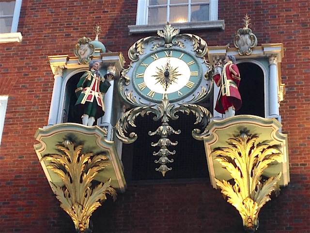 En su fachada hay un ostentoso reloj que cada hora que marca activa un mecanismo de autómatas y el Sr. Fortnum y el Sr. Mason salen a saludarse. A mis hijas les hizo mucha gracia. Ahí estábamos los cuatro en el semáforo esperando que salieran a saludar.