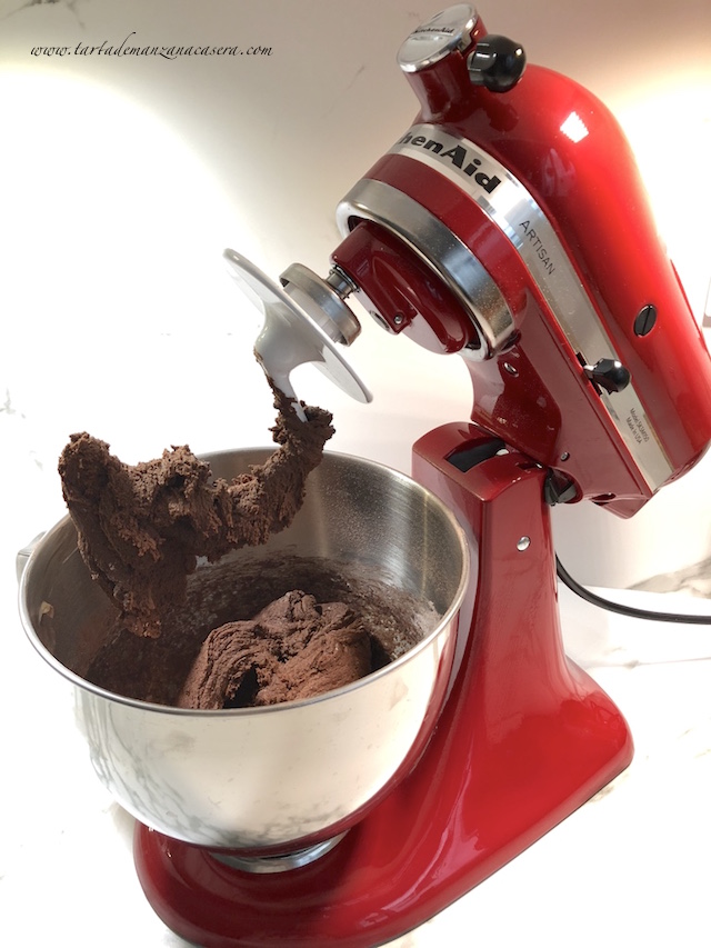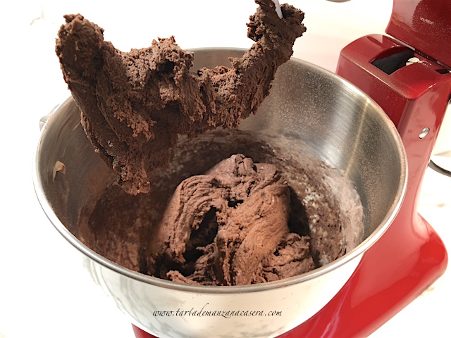 Tamizar la harina con el cacao y la sal, reservar. Moler el azúcar (si el grano es grueso, si no no hace falta). Batir la mantequilla (que no esté muy fría) con el azúcar.
