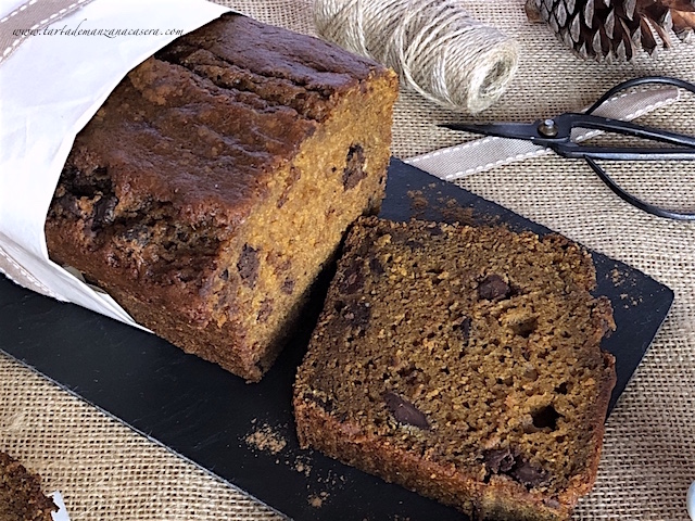 Ya sabéis lo mucho que me gusta la calabaza asada así que no me canso de publicar recetas que la lleven como ingrediente principal. Mis suegros tienen una casa en Viver y para aprovechar la chimenea de leña suelen asar calabaza así que tengo la más rica de las calabazas, valenciana, asada y a leña. ¡Qué más se puede pedir! Pues en este caso un Loaf o pan rápido dulce de calabaza, Pumpkin Chocolate Chips Bread. ¿Qué casa mejor con la calabaza que el chocolate? Mmmmm se me hace la boca agua. Y es que si además estamos hablando de una receta de Sally del blog Sally’s Baking Addiction, el éxito está asegurado. Me encanta todo lo que hace.
