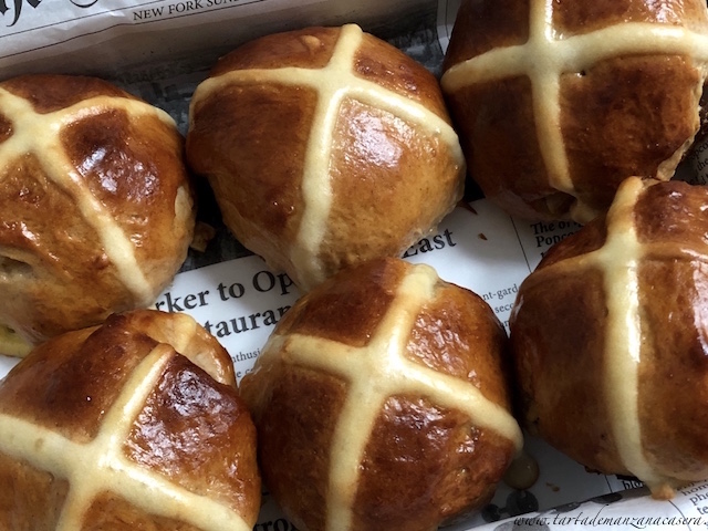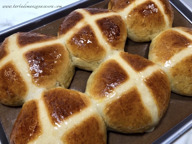 Una vez enrollada la tira hacer rodar el cilindro sobre la superficie para aplastar un poco la masa y que se junten un poco las juntas de las tiras de masa, como un rodillo. Intentar no tocar las agarraderas de silicona con la masa o durante el horneado se deslizará. Untar toda la superficie con mantequilla derretida y dejar reposar 15 minutos. Mientras, preparar una bandeja en la que mezclaremos los azúcares y la canela para luego rebozar la superficie del Trdleník. Colocar el soporte metálico en una bandeja de horno y colocar los cilindros con la marca I boca arriba (hay tres: I, II y III). Hornear de 20 a 25 minutos a 200ºC a media altura. Cada 7-8 minutos girar un tercio (hasta la siguiente marca y con cuidado de no quemarse) y volver a untar de mantequilla con la ayuda de un pincel. Una vez dorados retirar del horno y dejar enfriar 5 minutos para no quemarnos al coger las agarraderas de silicona (yo utilizo una manopla). Volver a untar con mantequilla y rebozar en la mezcla de azúcar y canela. Retirar el agarrador de silicona y deslizar por el cilindro para sacar el Trdleník. Limpiar el molde y volver a repartir el proceso, salen 2 más.