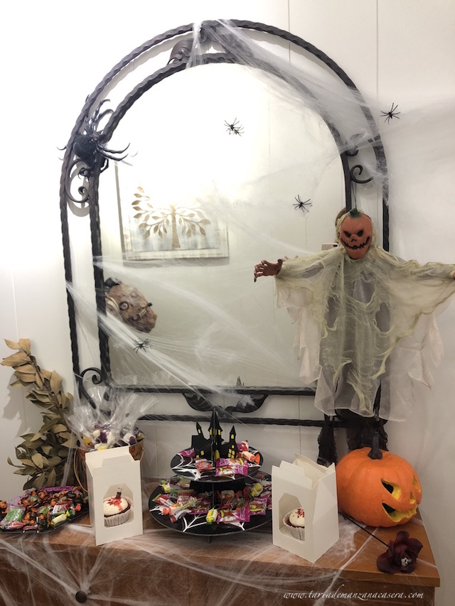 Pues este año de nuevo he preparado galletas y postres, y mi marido se ha vuelto a disfrazar con mi buen amigo Carlos para dar un buen susto a los niños del barrio mientras yo volvía a recompensarlos con una sencilla galleta o un cupcake.