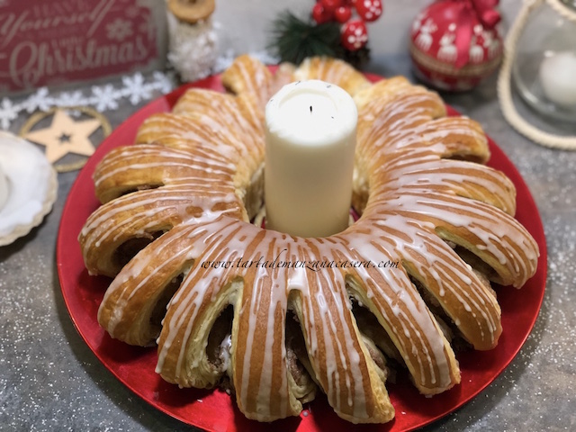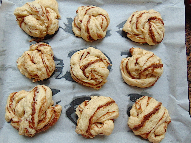 Así queda la masa enrollada y pincelada antes de hornear.