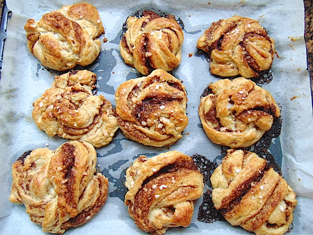 Vamos con la receta, ingredientes a temperatura ambiente. Podéis utilizar levadura fresca o seca de panadero tanto la normal como la instantánea (ver Dulcepedia). La receta que he utilizado es la que más veces he visto en la red y curiosamente la que viene en las instrucciones del molde de Tescoma. Son todos de andar por casa. La receta es sencilla. Importante respetar el tiempo de levado. Conseguir una masa lisa y elástica. Enrollar con cuidado sobre los tubos previamente untados con un poco de aceite o mantequilla. El último trozo a enrollar lo colaremos bajo el anterior para que no se nos suelte durante el horneado. La primera hornada es de entrenamiento, se me descolgó y rompió uno de ellos, visto el error la siguiente quedó mejor. No os excedáis poniendo masa, ni la pongáis demasiado fina.