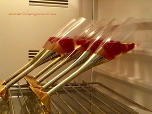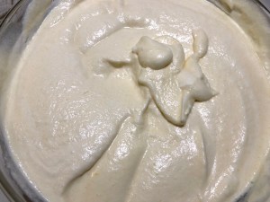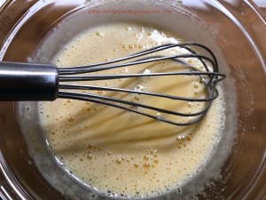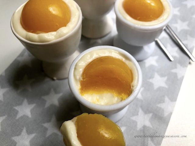 Se recomienda no «batir» los ingredientes con la cuchara sino coger las texturas diferentes en la misma cuchara y mezclar en la boca para apreciar la suavidad de la cuajada. Como veis está totalmente cuajada sin hacer nada más que añadir las gotas de cuajo.