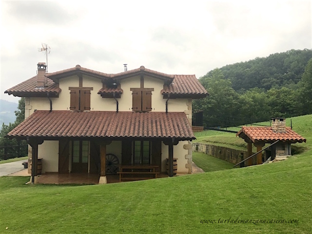 La casa tiene nombre propio, Haizegu. En euskera Haize-hegoa significa viento del sur, pero en Aranosa se acortan mucho las palabras y por eso dicen Haizegu. En la casa, obviamente, pega mucho el viento del sur, de ahí el nombre. Con su tejado, su piedra, la balconada, el porche y las contraventanas de madera es realmente preciosa, rodeada de pastos, cerca de un caserío familiar y con su propia fauna: