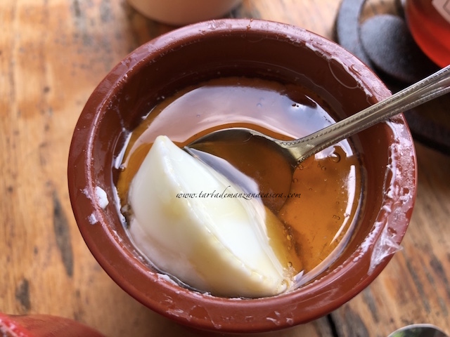 Y para reponer fuerzas cuajada de leche fresca de oveja con un chorrito de miel, estas que nos comimos en la casa son de la marca Goshua.