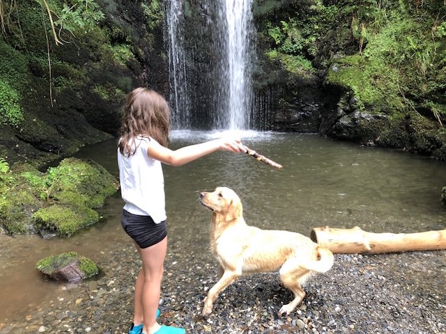 Aunque mis hijas disfrutaron más lanzando palos a Lur que se lo pasó pipa bañándose en las frías aguas de la cascada mientras los buscaba.