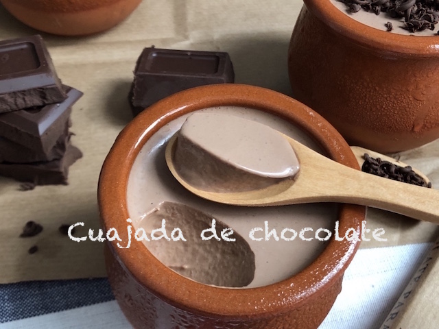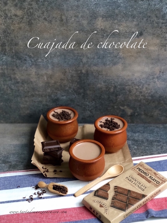 Si queréis saber un poco más acerca de la historia de la cuajada y su elaboración visita el post que publiqué ayer. Esta cuajada os sorprenderá, tiene una textura similar a una mousse suave al paladar, cremosa, mmm es inexplicable, no pensé que fuera a gustarme tanto. Para que se funda bien el chocolate esta vez calentaremos más la leche. Aunque Chocolates Valor suele ser mi marca de referencia esta vez he elegido un chocolate navarro, por la cosa de hacer la cuajada más «a la navarra».