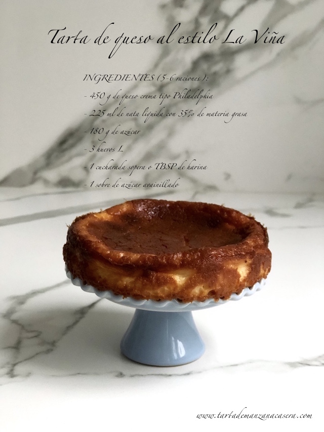 Ya que estuvimos por Navarra hace unas semanas de vacaciones, aprovechamos para ir a San Sebastián y degustar la famosa Tarta de queso del restaurante La Viña. Todo un acierto, está deliciosa. La receta original no es ningún secreto, ellos mismos nos la ofrecen. Yo he adaptado las cantidades a un molde más pequeño.