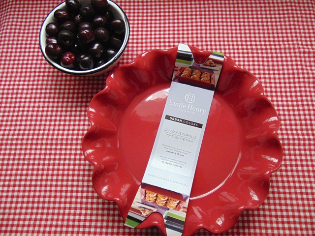 De paso estreno un molde nuevo, perfecto para clafoutis de la marca Emile Henry. Es redondo y color frambuesa (26 x 26 x 6 cm ó 1,20 l). Es de una marca francesa que fabrica cerámica desde 1.850. Gracias a sus arcillas, ricas en propiedades refractarias, la Borgoña sigue siendo una tierra fecunda para los ceramistas, y así éstos perpetúan la tradición de generación en generación. La verdad es que me encantan las ondas de esta fuente y es muy resistente.