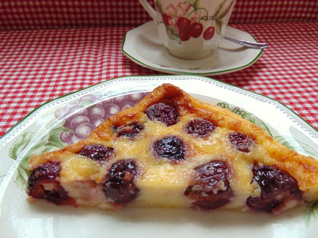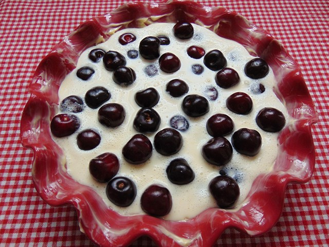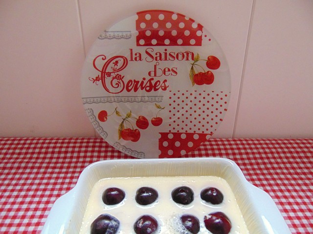 Si hay un postre típico del verano en Francia es la Clafoutis de cerezas. Y aunque está acabando la temporada de cerezas aún estáis a tiempo de hacerla, es sencilla y está deliciosa. En realidad no es una tarta sino un pastel pues no tiene base de pasta ni masa sino una mezcla similar al crêpe con cerezas enteras y con hueso.