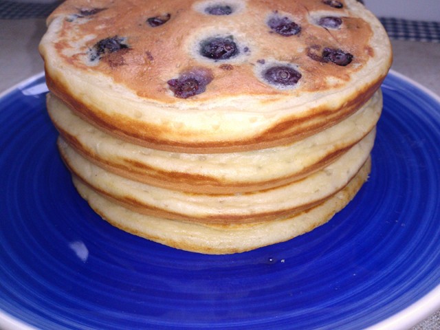 Ya sabéis lo mucho que me gustan los frutos rojos. Si además en Lidl encuentro la bandeja de arándanos frescos de 125 gr a 1’20 euros primero los compro y luego pienso lo que hago con ellos. Después de hacer la fantástica Pavlova de frutos rojos hace unos días decidí hacer también una nueva receta de Pancakes pero con arándanos, que sólo verlos en la foto daban ganas de hincarle el diente. Y efectivamente, esponjosos es decir poco, deliciosos.